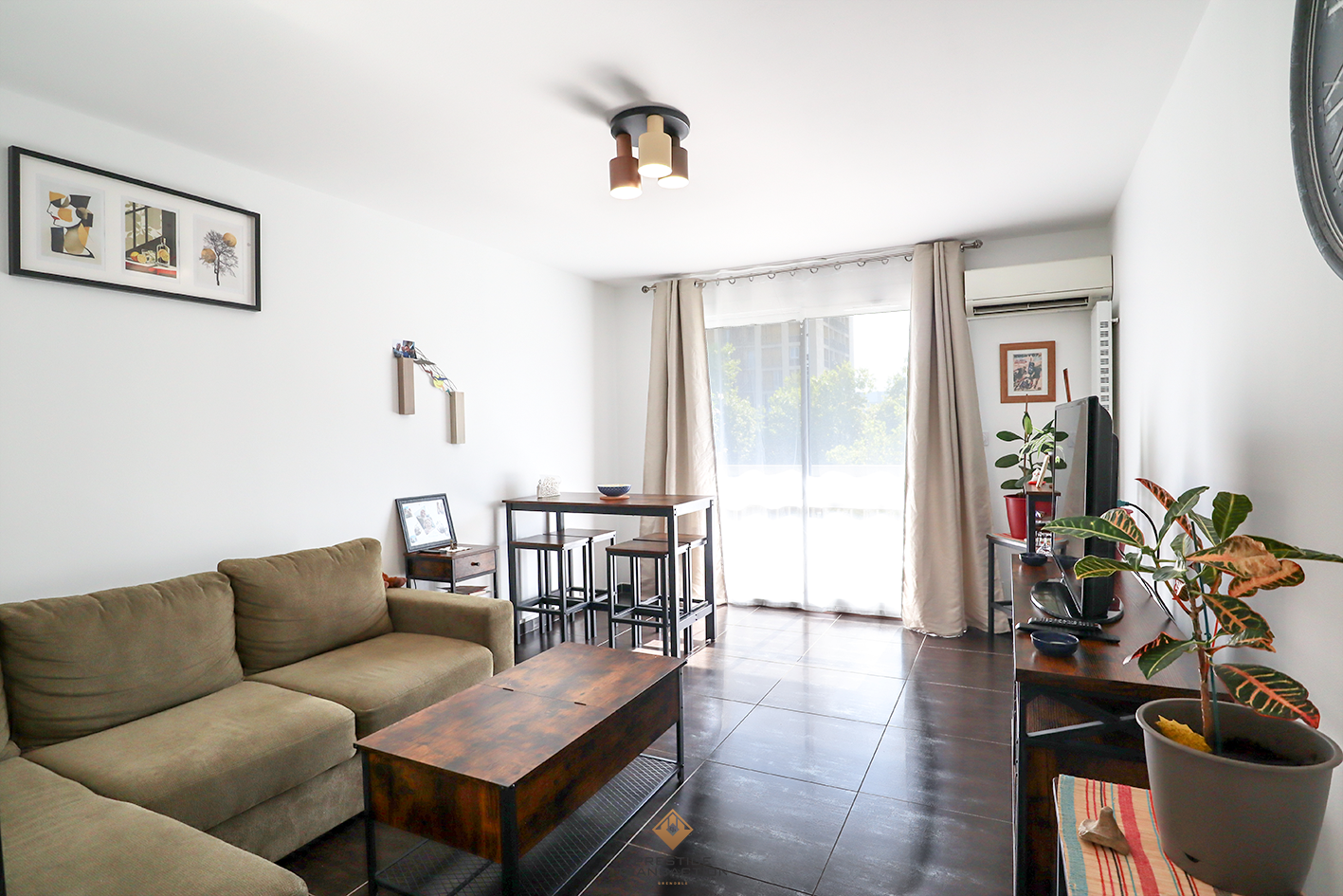 Le bien dispose d’un séjour très lumineux avec balcon, d’une cuisine neuve et entièrement équipée, d’une chambre possédant de grands espaces de rangement, ainsi que d’une salle d’eau avec douche italienne et d’un WC indépendant.