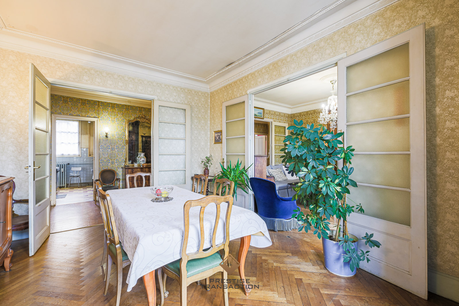 Idéalement situé au 5ème étage d’un immeuble avec ascenseur, ce bien de 145 m2 A RENOVER possède les beaux codes de l’ancien : hauts plafonds, moulures, parquets massifs.