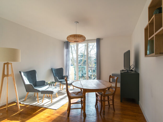 Il se compose d’un hall d’entrée desservant une cuisine séparée et équipée avec balcon, un beau séjour donnant sur un balcon exposé OUEST, deux chambres spacieuses, une salle de bains rénovée et un WC séparé.