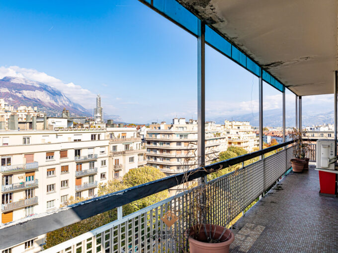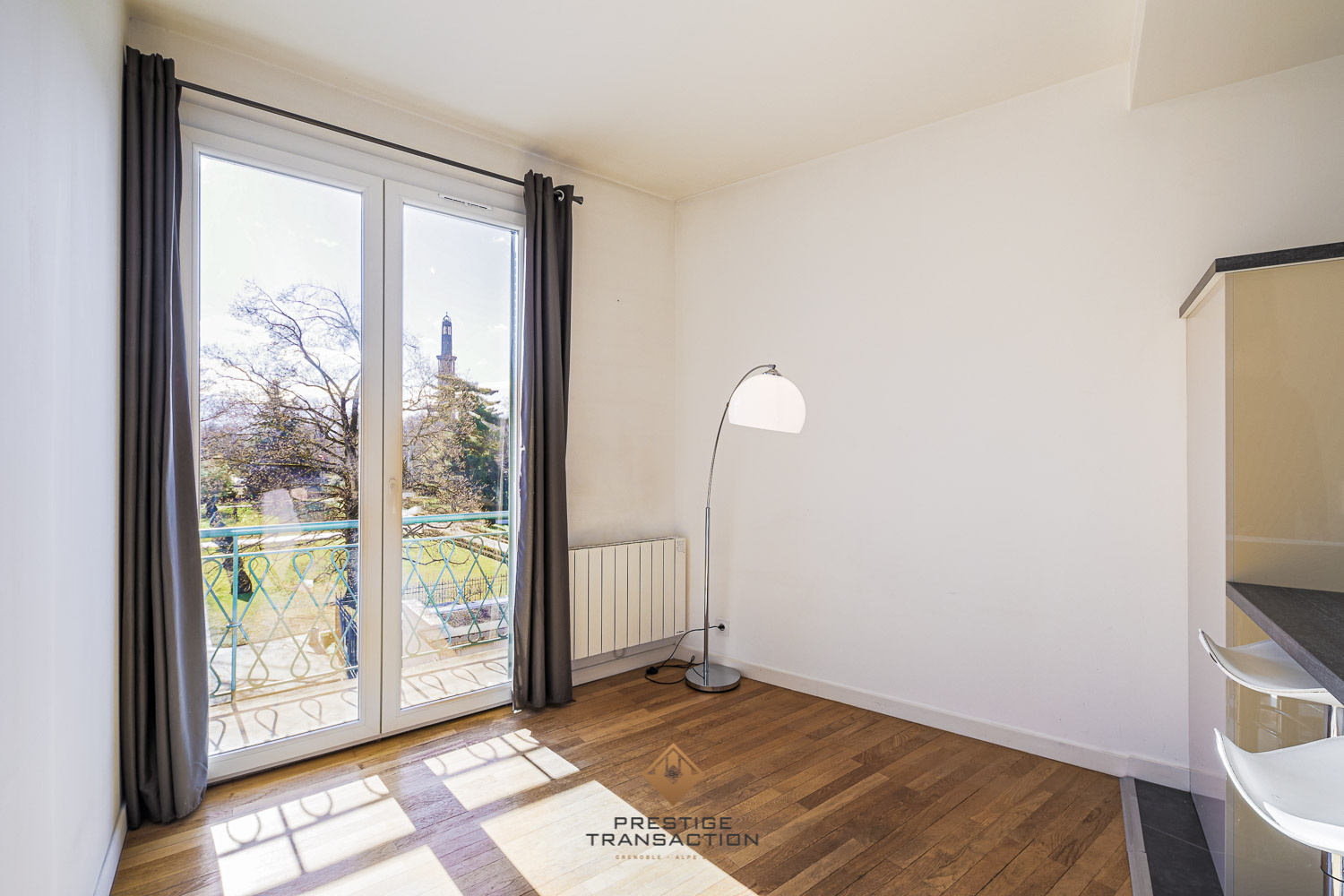 Composition : Cuisine ouverte et entièrement équipée, espaces de rangements, séjour lumineux et donnant accès au balcon avec vue imprenable sur le jardin des plantes et le Vercors, une chambre avec rangements, une salle de bain et un WC séparé.