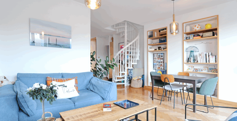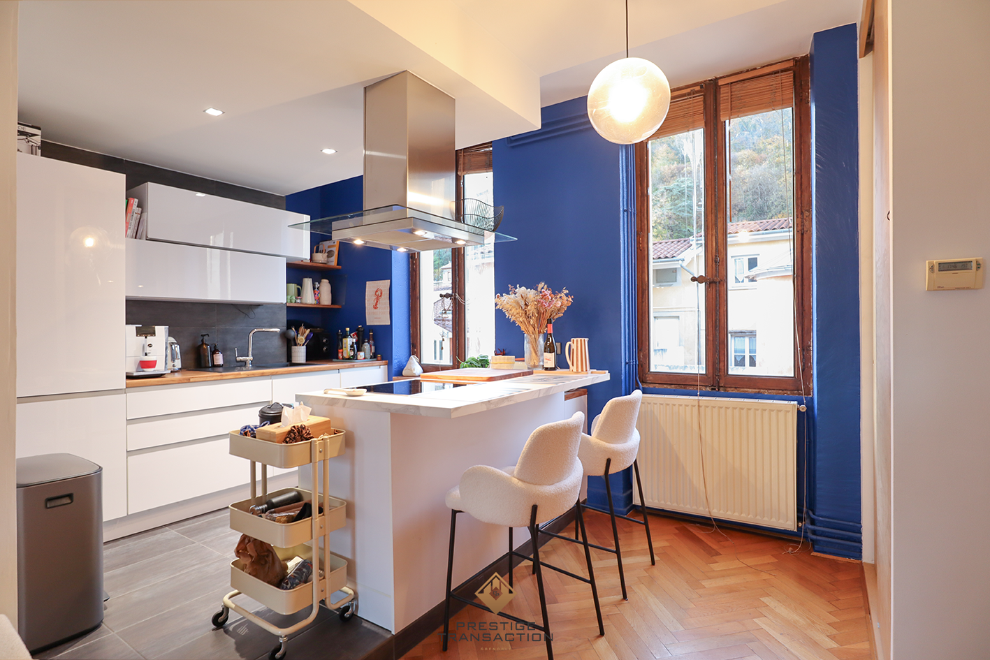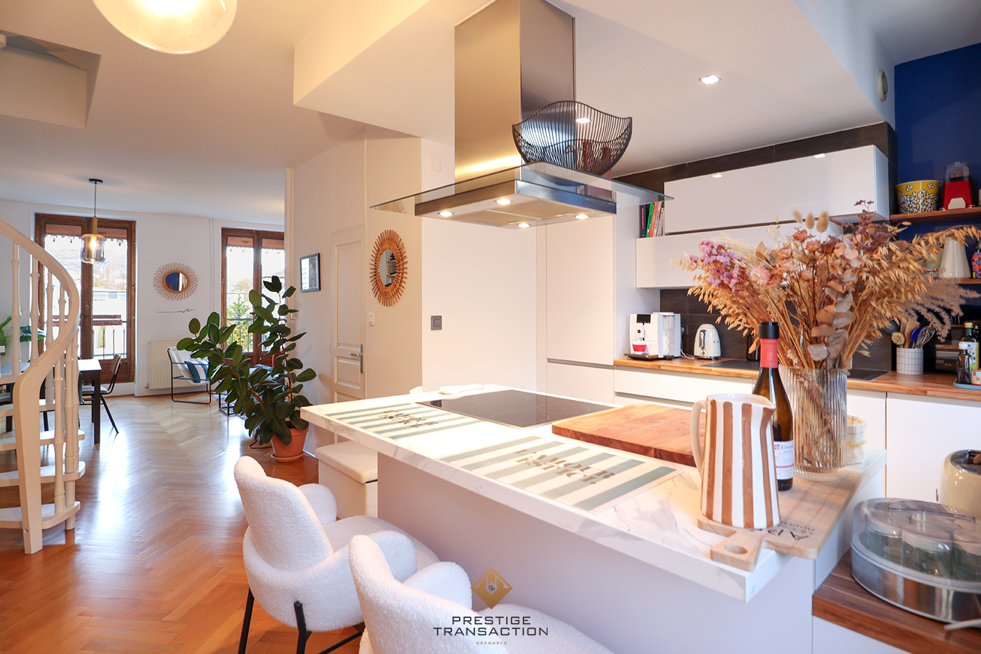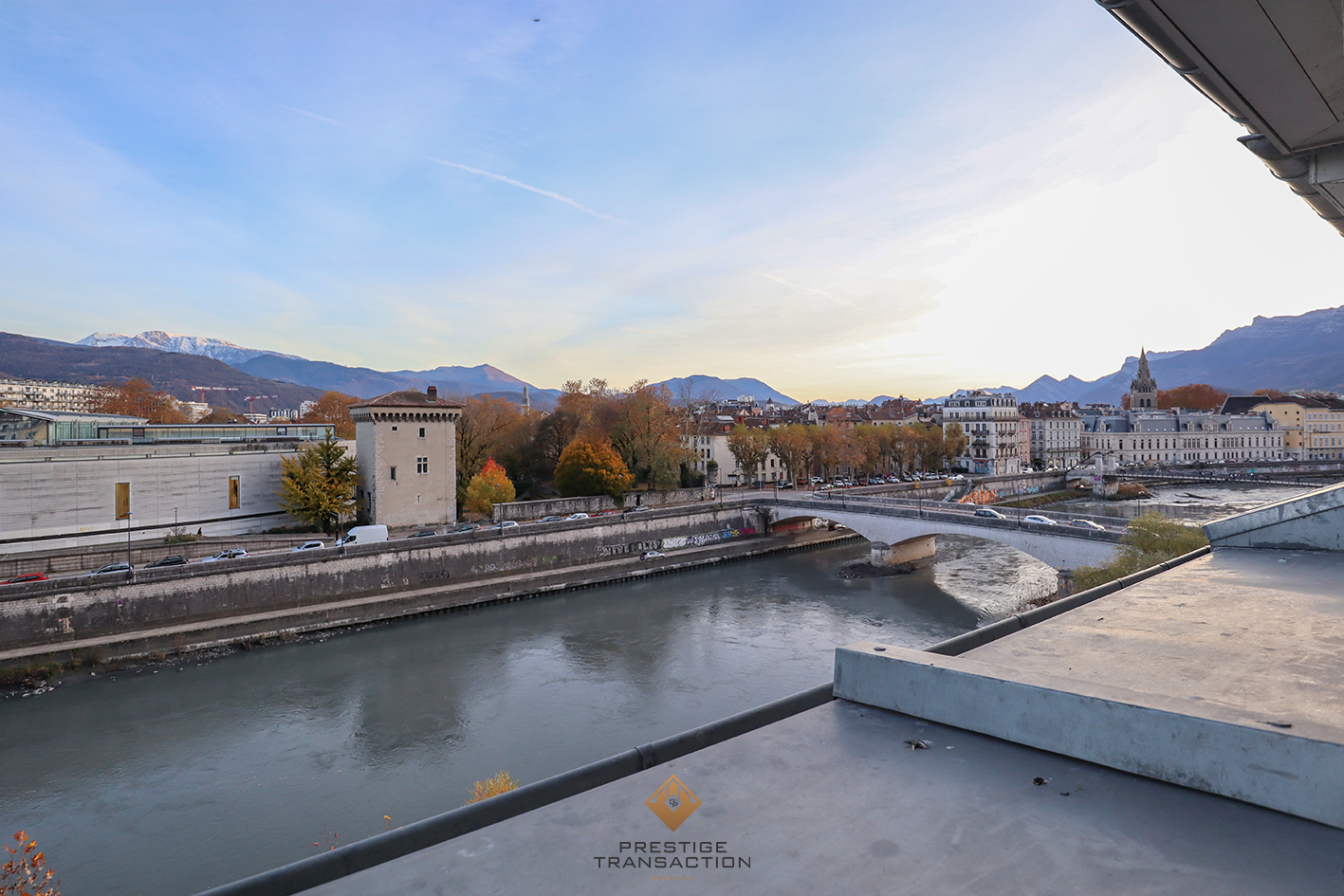 Magnifique dernier étage de 88 m2 habitables avec vue imprenable sur les montagnes et les quais de l’Isère