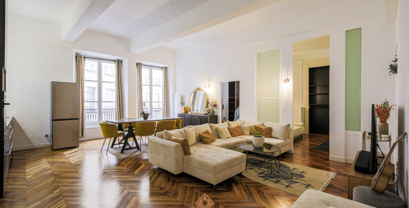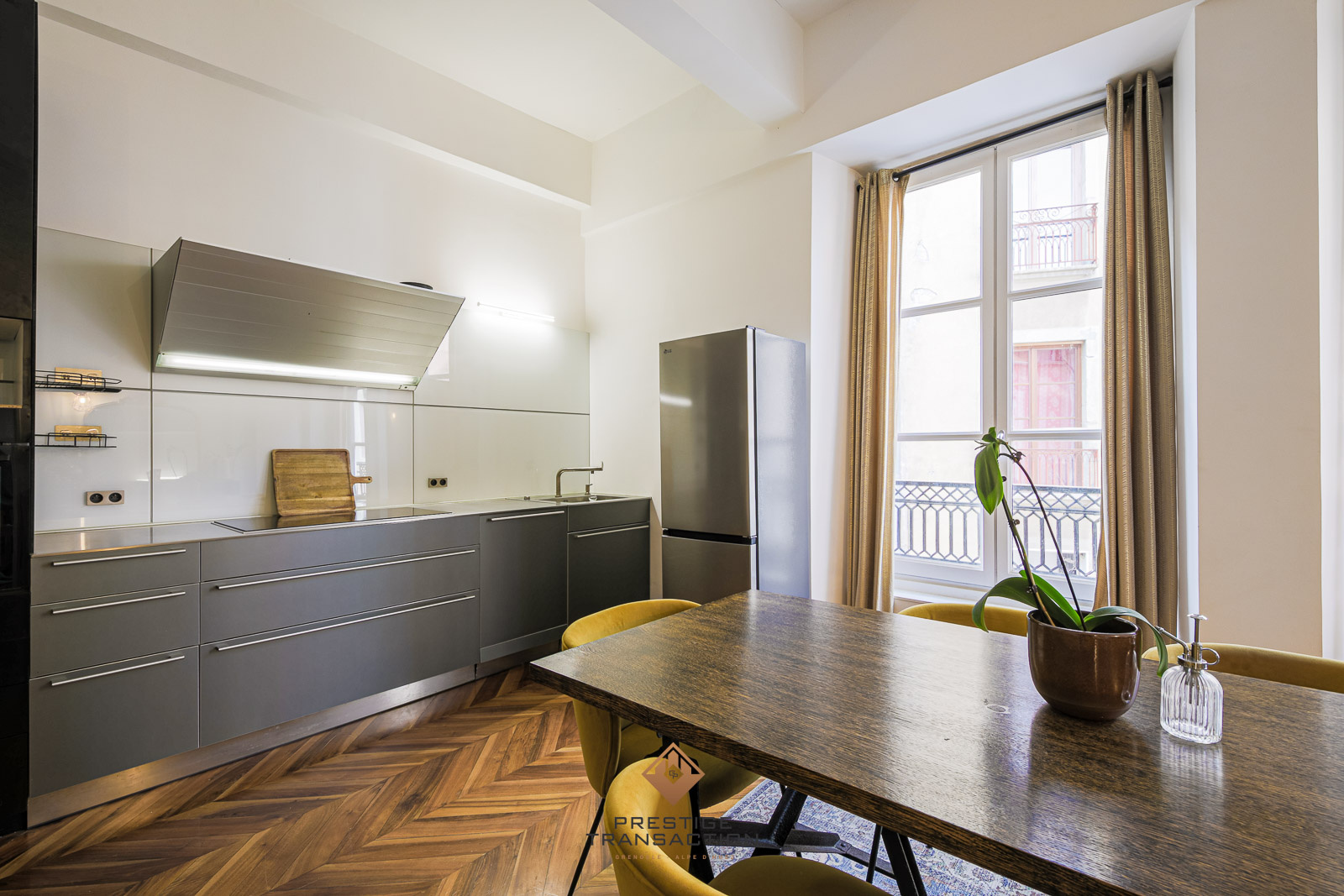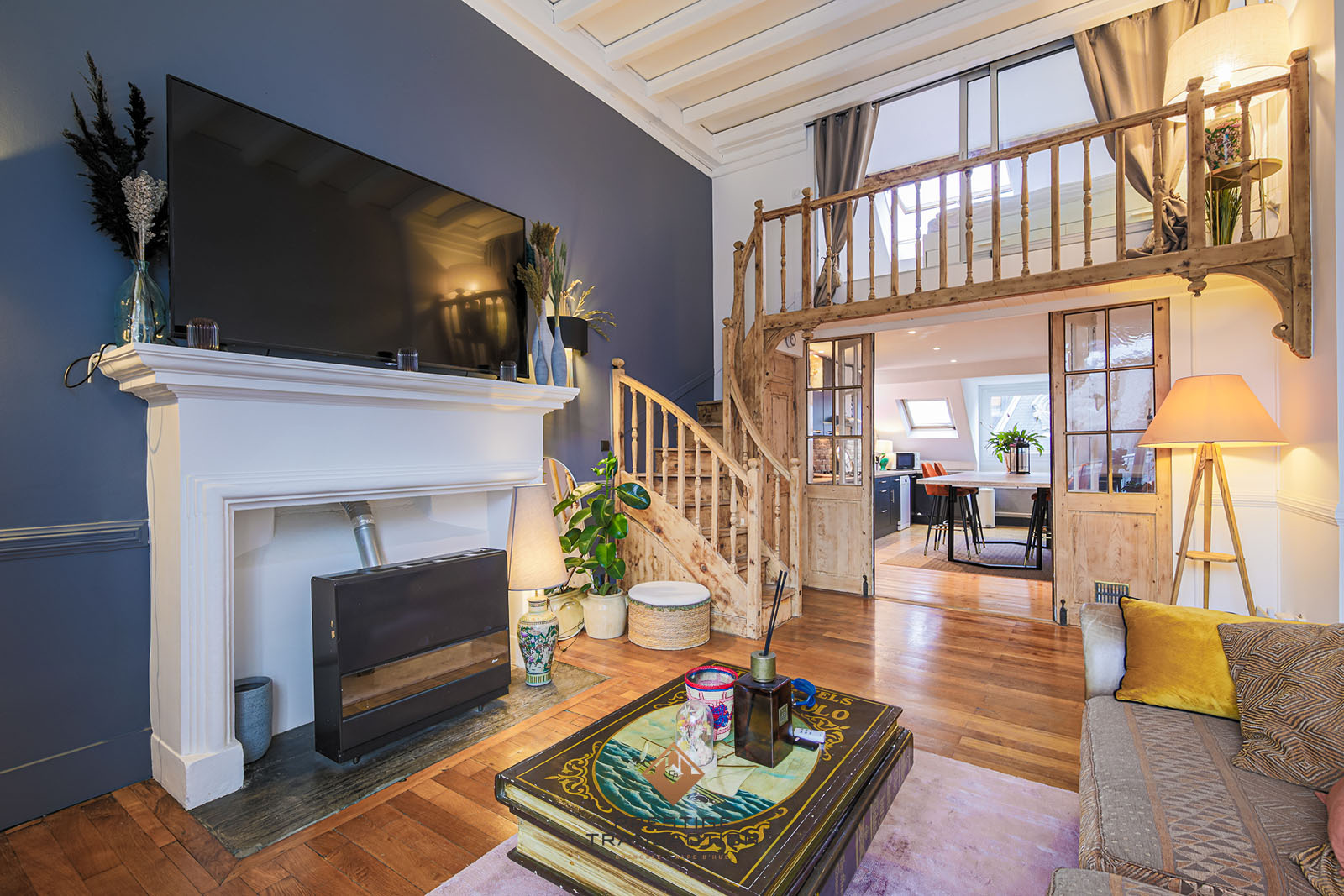 Vous serez séduit dès l’entrée par son superbe parquet et ses volumes généreux, avec une pièce de vie de 43 m2 sublimée par une hauteur sous plafond de 3,50 m. La cuisine américaine, est entièrement équipée, elle s’intègre parfaitement à l’espace.