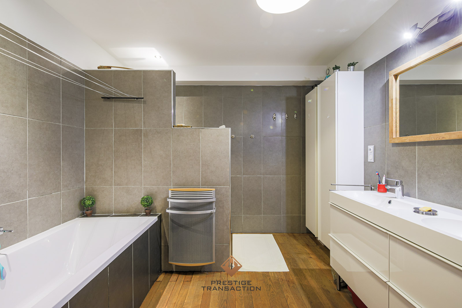 Côté nuit, deux chambres spacieuses avec rangements, ainsi qu’une belle salle de bain équipée d’une douche et d’une baignoire. De nombreux placards complètent le tout.