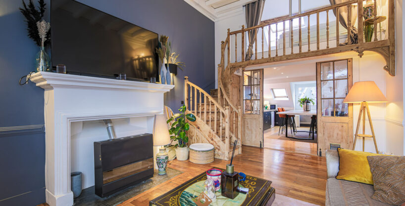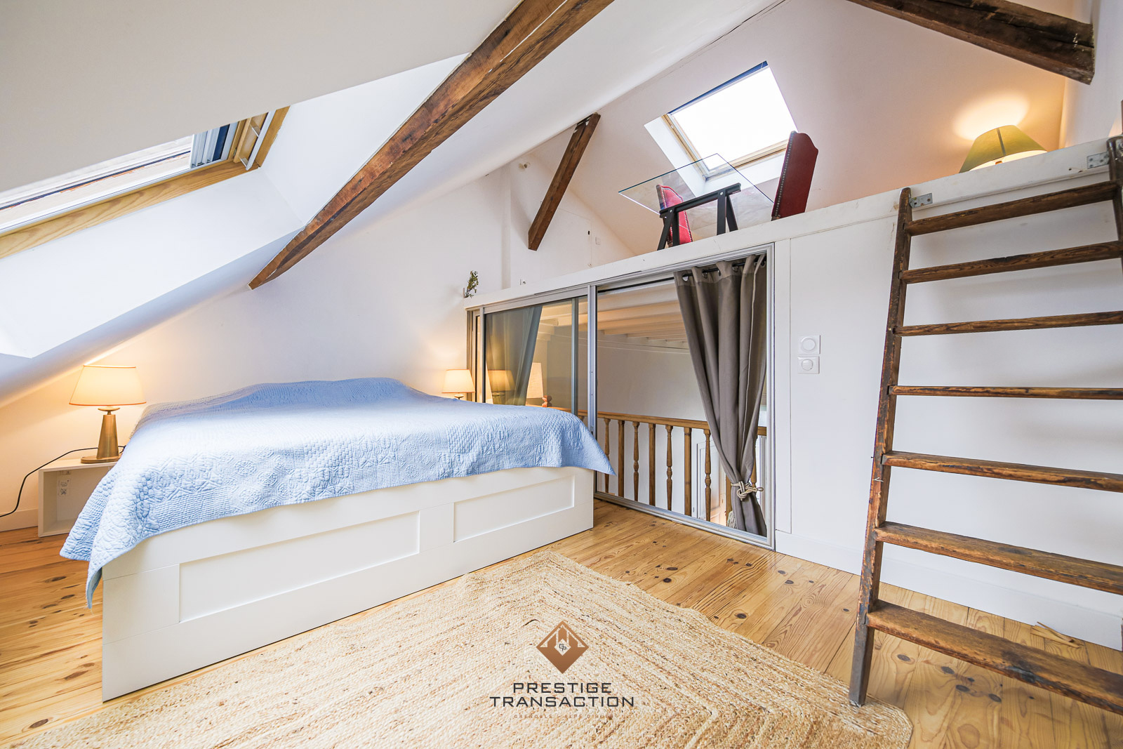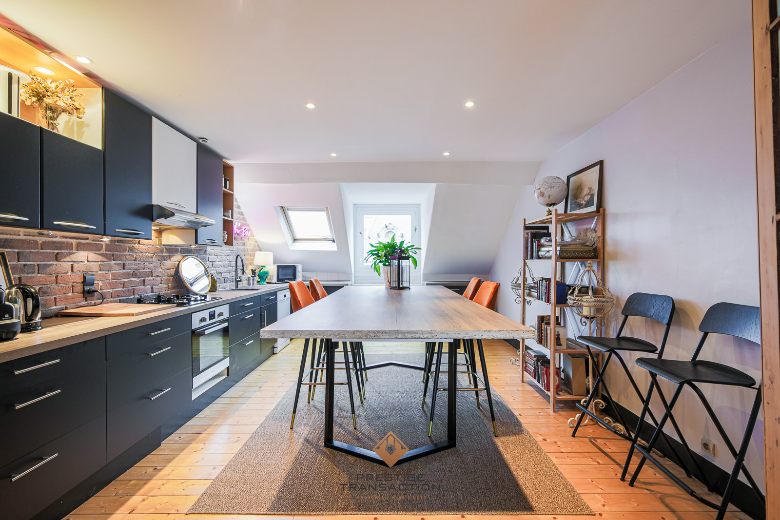 Situé au 5ème étage avec ascenseur, cet appartement se distingue par ses volumes généreux et sa lumière naturelle omniprésente. La grande pièce de vie, dotée d’un plafond cathédrale, s’ouvre sur une cuisine semi-ouverte, parfaitement équipée. Vous trouverez également deux chambres, chacune avec sa salle de bain et WC privatifs, ainsi qu’un espace dressing/buanderie et une entrée chaleureuse.