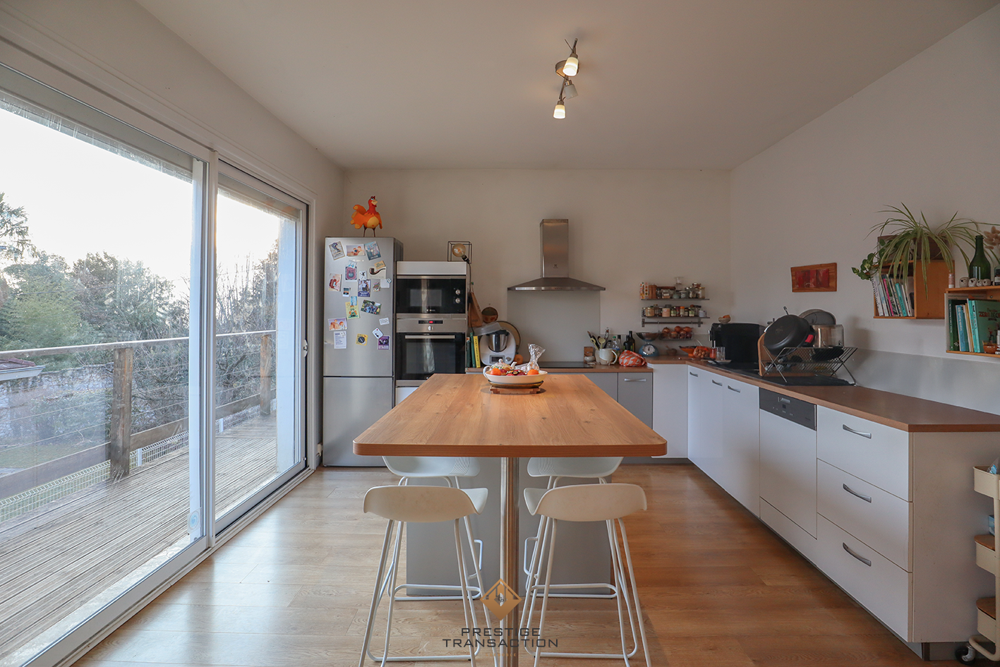 A l’étage, vous apprécierez le séjour de 47 m2 avec cuisine ouverte et donnant sur une terrasse de 34 m2 exposé Est/Sud et Ouest.
