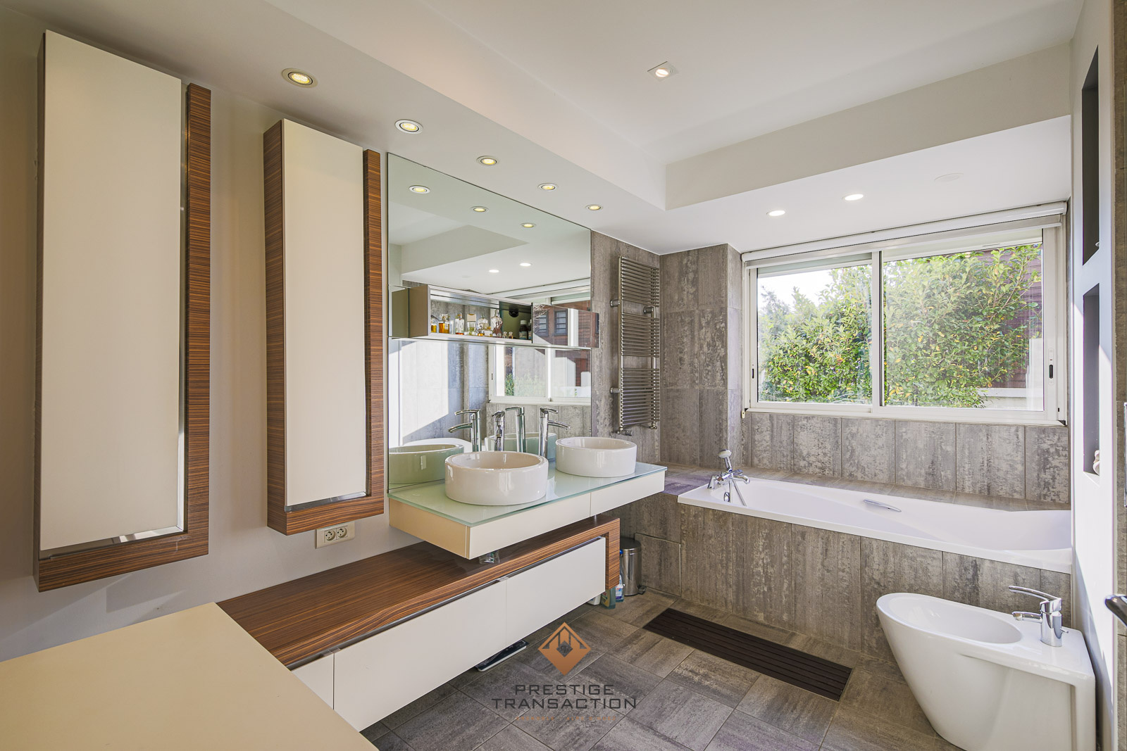 Calme et sérénité caractérise cette propriété d’exception. Nichée sur les hauteurs de La Tronche la propriété offre une vue imprenable tout en restant à 5 minutes du centre-ville. Edifiée sur un terrain de 1444 m2 elle propose 219 m2 habitables De plain-pied, vous apprécierez la pièce de vie avec sa cuisine attenante donnant directement sur une terrasse surplombant la ville et offrant une vue imprenable. La propriété propose 4 chambres dont une suite parentale avec salle de bain privé. Salle de cinéma, cave et de nombreux rangements. Garage double, trois places de parking extérieure avec borne de recharge électrique. Source naturelle pour alimenter le système d’arrosage Très rare à la vente. Prix : 1050000 € Honoraires charge vendeur Tél : 04 58 47 90 91 www.prestige-transaction.fr