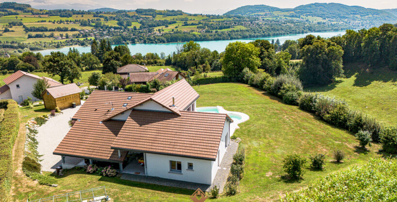 L’agence PRESTIGE TRANSACTION vous présente en exclusivité cette maison contemporaine de 220 m2 habitables avec VUE SUR LE LAC de Paladru, située sur une parcelle de 3446 m2 dans un quartier calme et prisé des Villages du Lac de Paladru. À seulement 15 minutes de la gare, 20 minutes de Voiron, 45 minutes de Grenoble, 1h30 de Lyon, et 1h45 de Genève, cette maison offre un emplacement idéal.