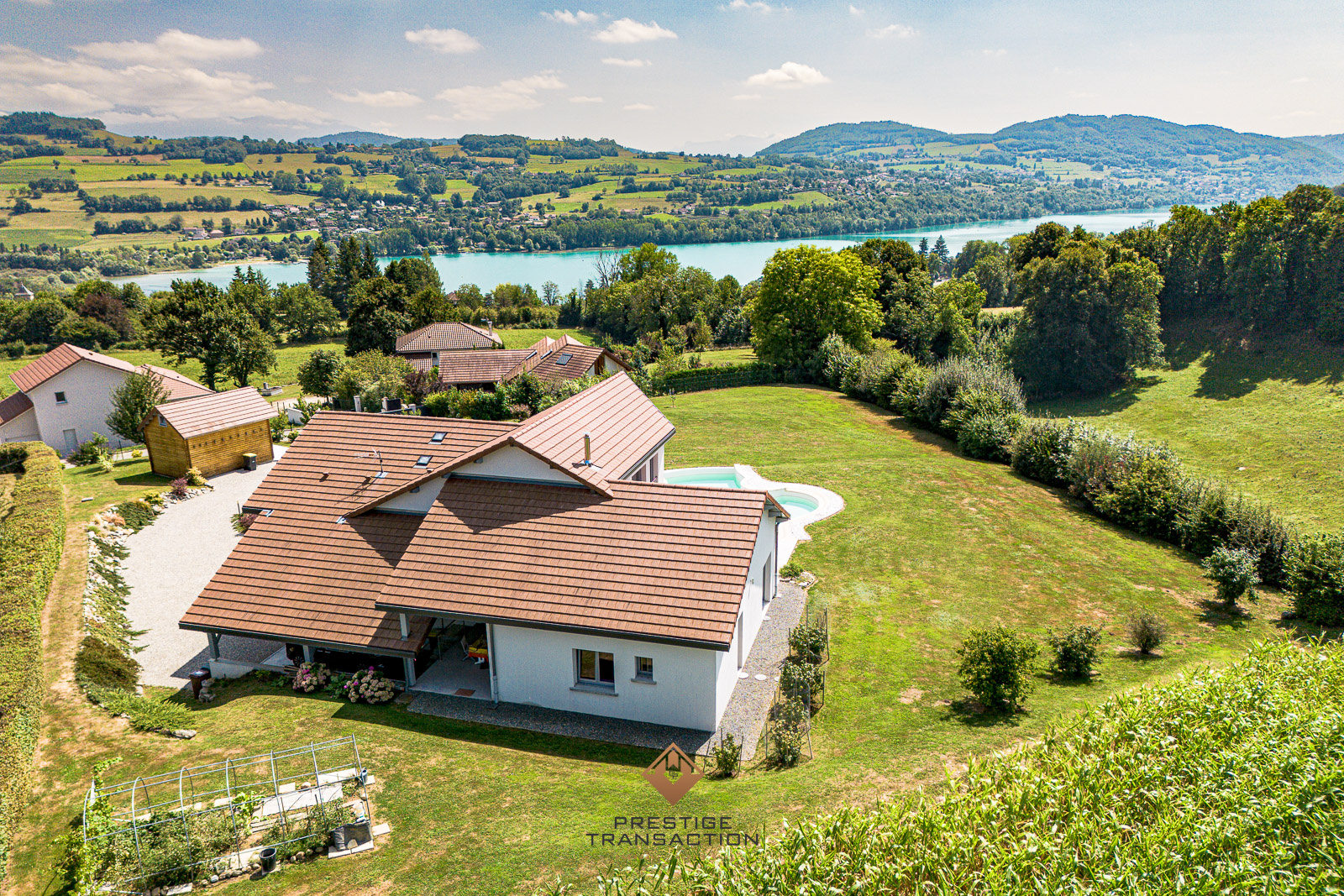 **VUE LAC PISCINE A DEBORDEMENT GRAND TERRAIN – HAUTE PERFORMANCE ENERGETIQUE**