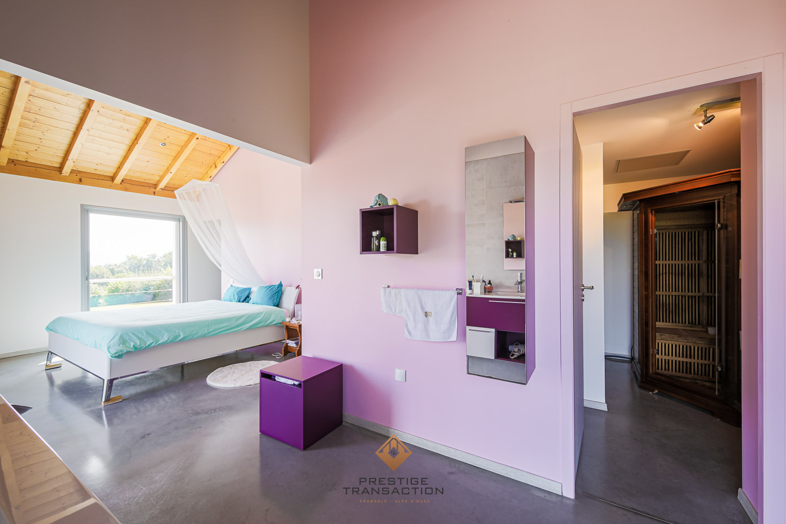 A l’étage supérieur, vous pourrez découvrir 3 chambres dont une suite parentale avec dressing, salle d’eau, SAUNA et terrasse privée, ainsi qu’une autre salle d’eau et un WC.